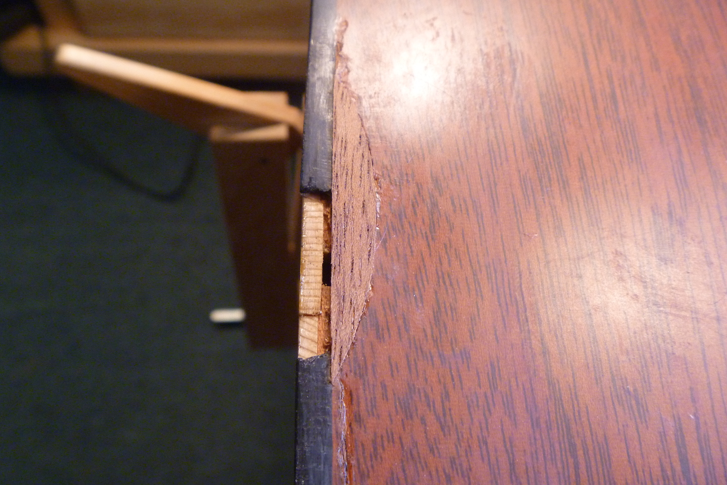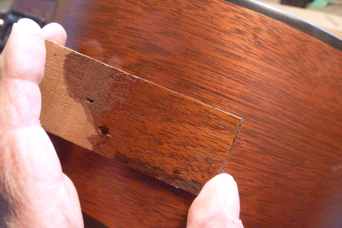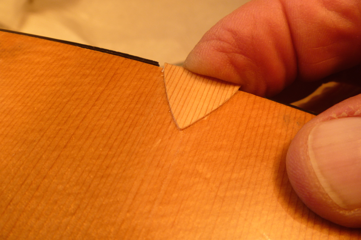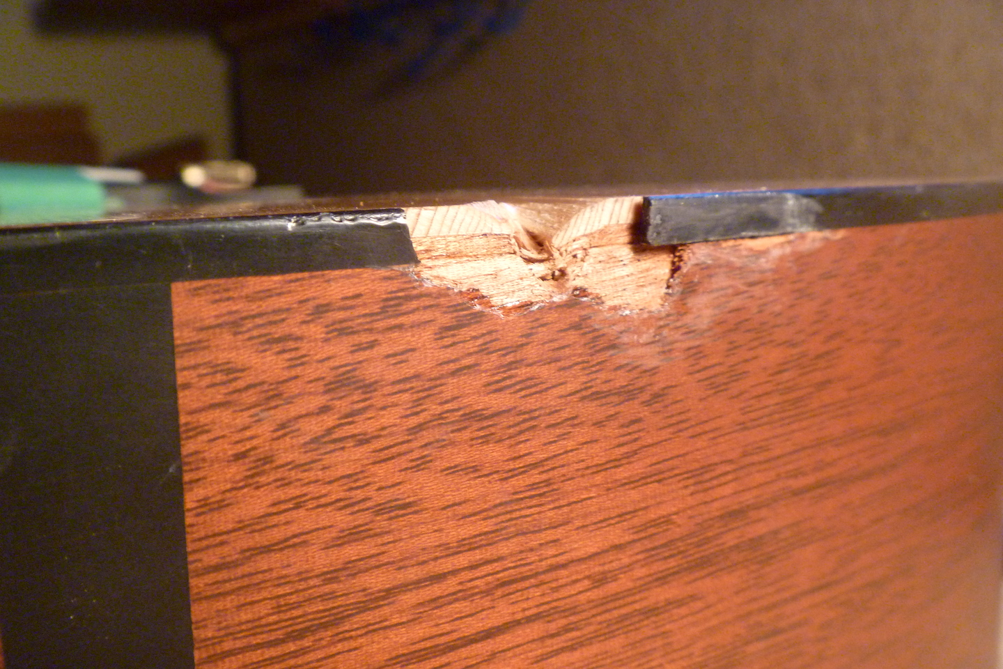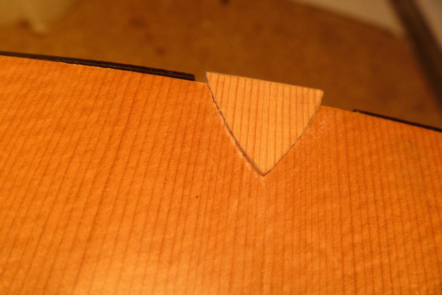 The guitar received crushing damage to the top and side and required replacing a section of binding. The photo essay that follows displays the repair process.