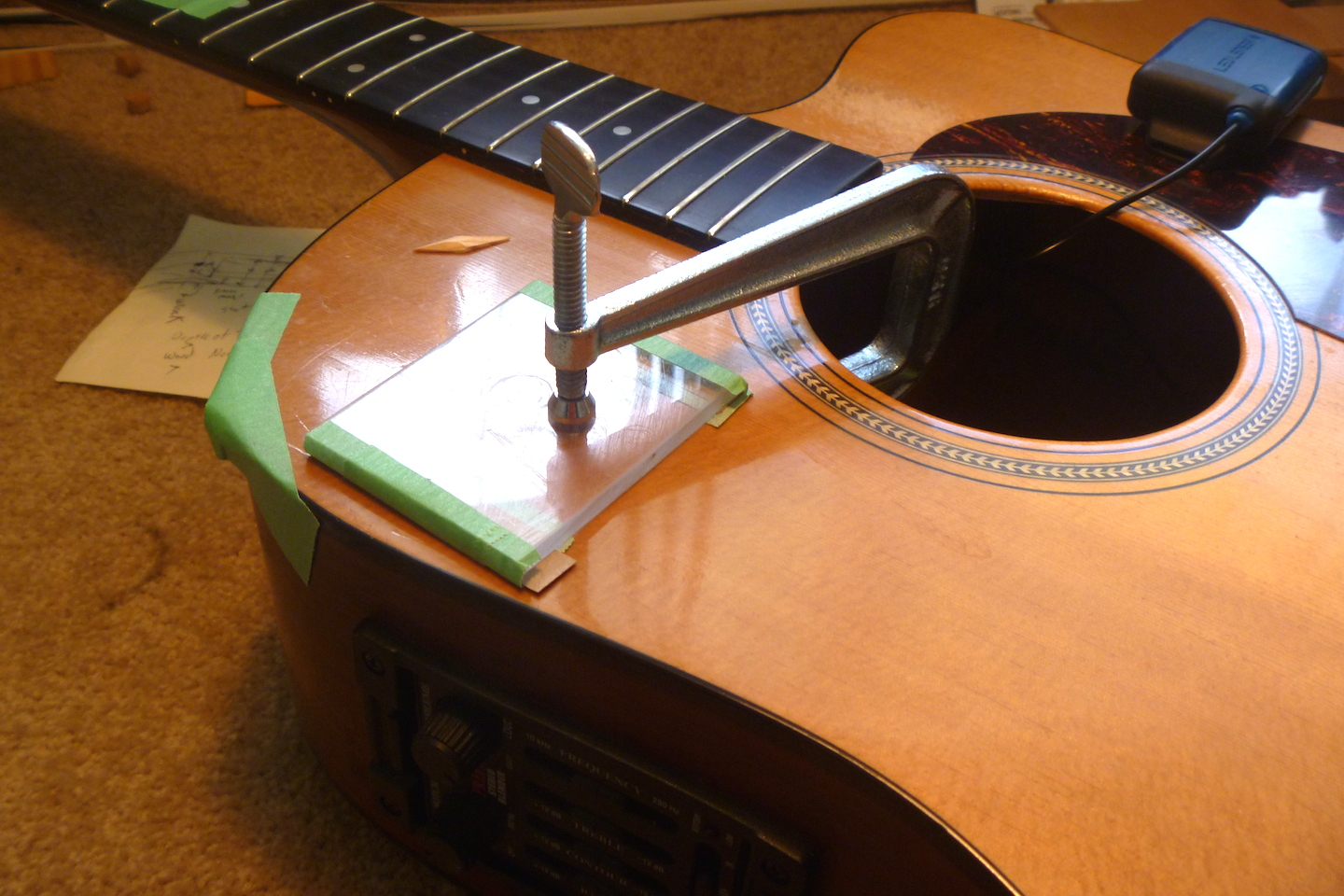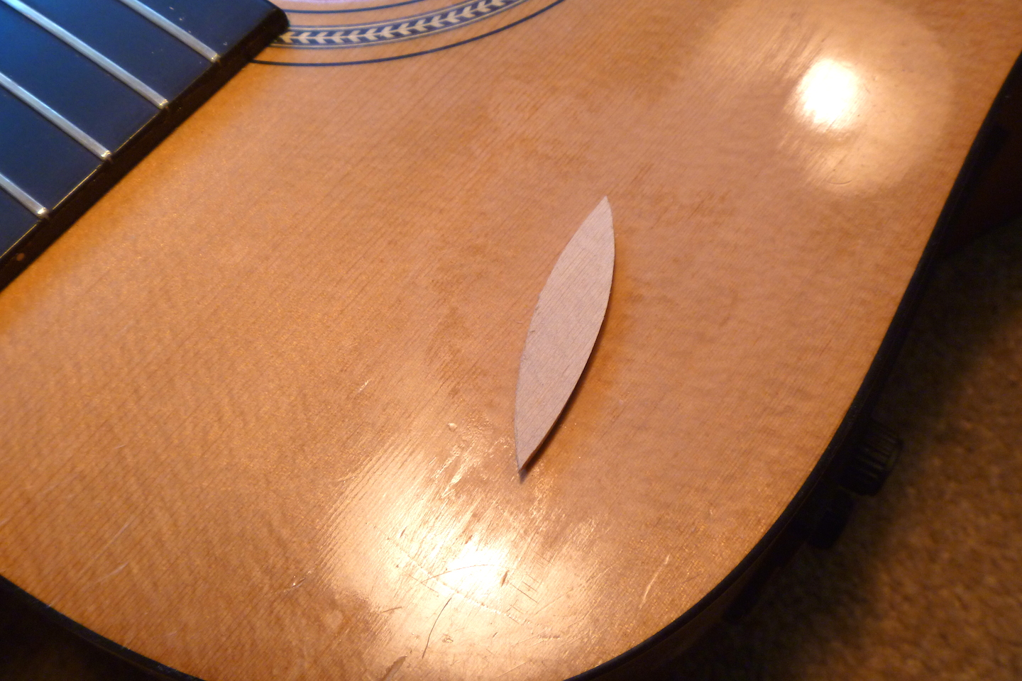 This guitar came to me from a well known Wellington based musician. He says he tripped over his dog. We'll give him the benefit of the doubt.